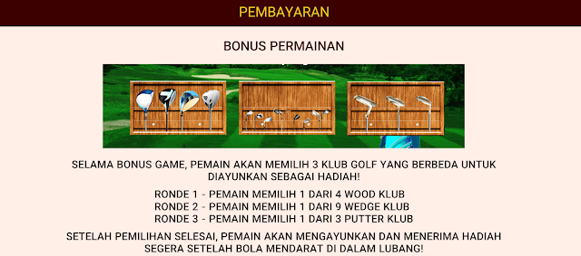 Situs poker online, Selama Fitur Bonus muncul Anda akan memilih 3 klub Golf yang berbeda untuk diayunkan dengan hadiah yaitu di Ronde pertama, Anda memilih 1 dari 4 Wood Klub, Ronde kedua Anda akan memilih 1 dari Wedge Klub, dan Ronde ketiga Anda akan memilih 1 dari 3 Putter Club. Setelah pemilihan selesai maka Anda akan mengayunkan dan menerima hadiah segera setelah bola mendarat di dalam lubang.