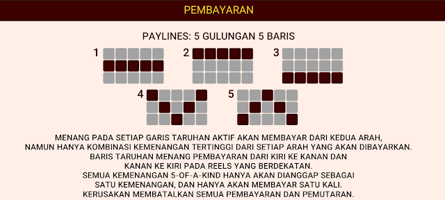 Bandar ceme, Tetapi hanya kombinasi kemenangan tertinggi dari setiap arah yang akan dibayarkan, dan Pembayaran berdasarkan baris taruhan menang dari Kiri ke Kanan dan Kanan ke Kiri pada gulungan yang berdekatan.