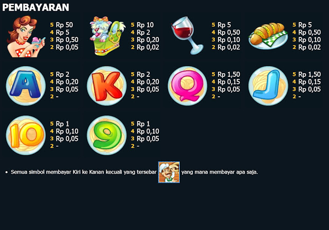 Mengenai permainan gratis akan diberikan apabila anda sukses mendapatkan 3, 4, sampai 5 simbol Koki yang muncul pada setiap gulungan maka masing-masing Anda akan mendapatkan 8, 15, sampai 50 putaran bebas.